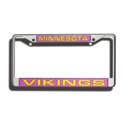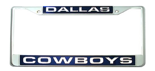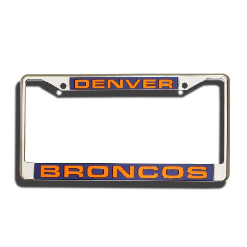 Showcase your team spirit when you're on the road with this officially licensed NFL® laser chrome license plate frame from Rico! The 6-inch x 12-inch metal frame is decorated in the team colors and designed with laser-cut acrylic team inserts at the top and bottom.Feature