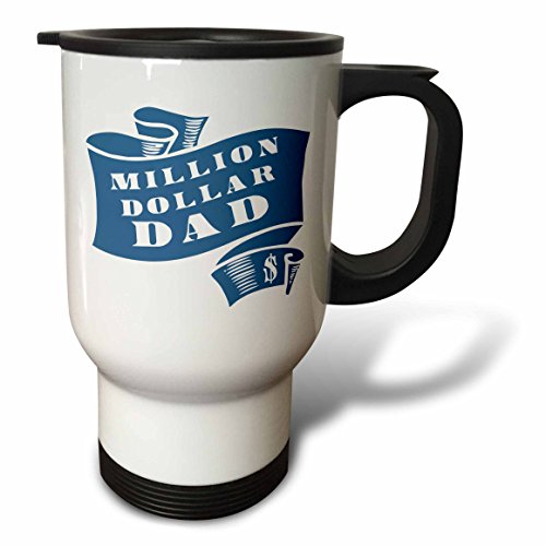3dRose tm_220320_1 "Teal Million Dollar Dad Scroll in rough Woodcut Style Stainless Steel" Travel Mug, 14 oz, Natural