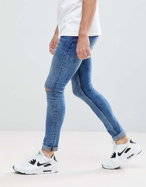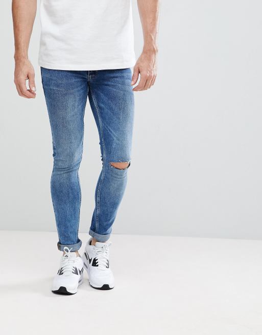 ASOS Extreme Super Skinny Jeans In Mid Wash Vintage With Knee Rips