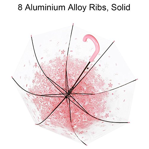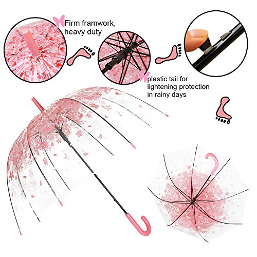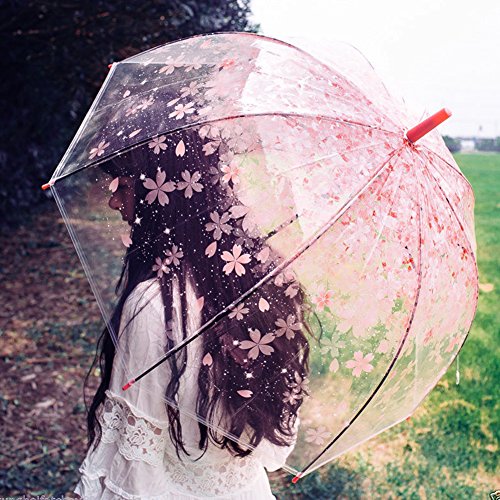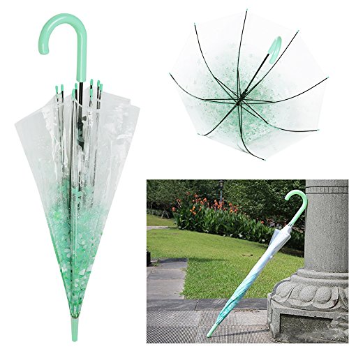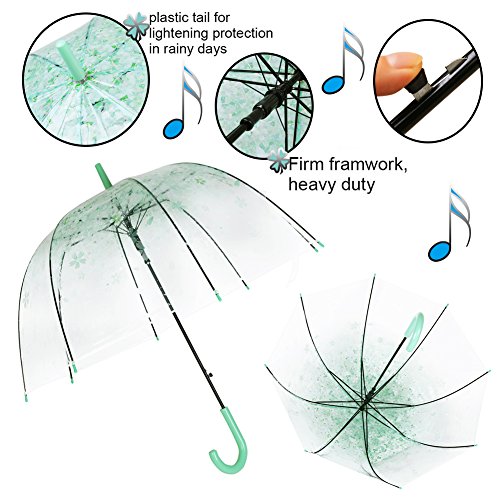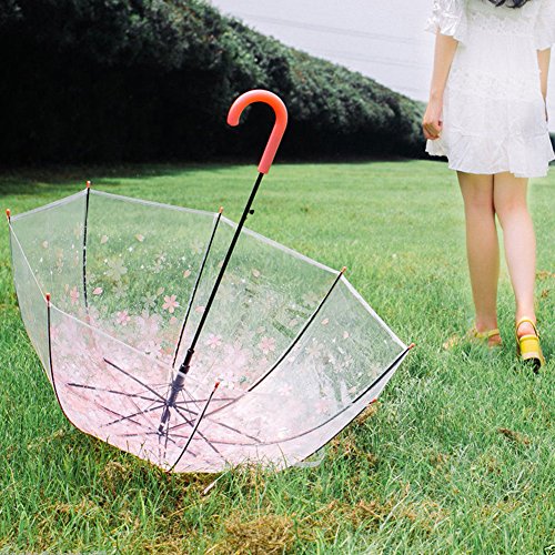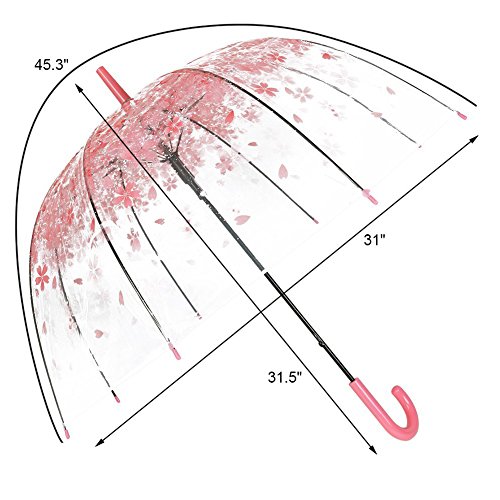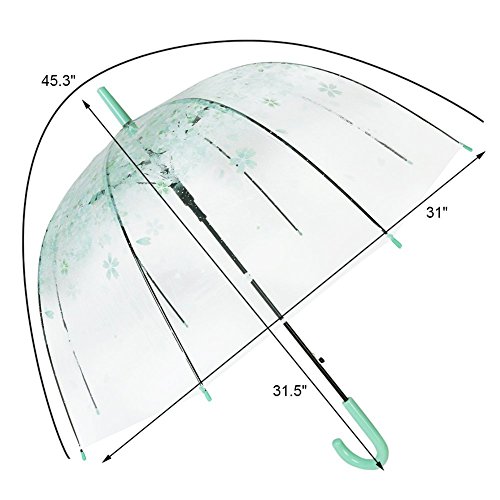 -. Feature : ☂The Arc of The Umbrella Surface:115cm/45.31in, Open Diameter 78cm/30.73in, Length 80cm/31.52in,capable of withstanding wind and rain,you are able to atay ary when it is raining and still see in front of me when you are walking while being fashionable,keeps you drier than the traditional umbrellas. / ☂Design of Anti - Stab in Arc:made from sturdy steel and High quality transparent plastic umbrella cloth, the umbrella is highly durable,Romantic cherry print umbrella cover clear rain umbrella and elegant green hook handle. / ☂Auto Open:automatic opening: easy automatic opening function means that the screen top opens when a button is pressed,it is perfect to protect you from bad rainy days. / ☂Classic Dome Shape Umbrella :fresh and lovely, can be used as a gift to your girlfriend or child. Lightning protection umbrella tail, the product is safe to use in rainy days, Durable Umbrella Fabric, give bright line of sight. / ☂POLICY:If you are unhappy for any reason, just give us a call or send an email and you'll get your money back - no questions asked. We will respond to any messages from our customers within hours