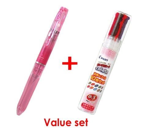 Pilot Hi-tec-c Coleto 5 Color Multi Pen Body Component - Clear Pink Body & Multi Pen Ink Cartridge - 0.3 Mm - 10 Color starter set