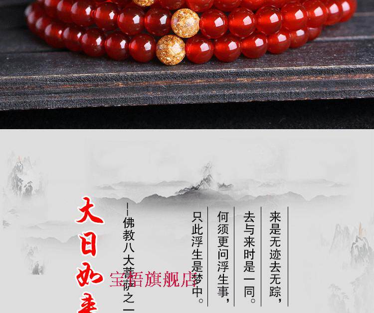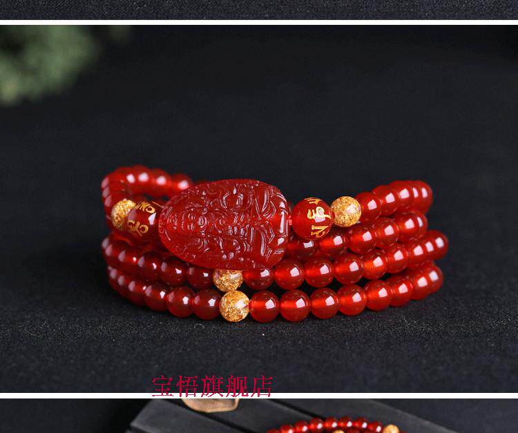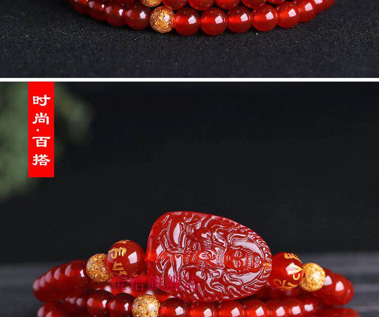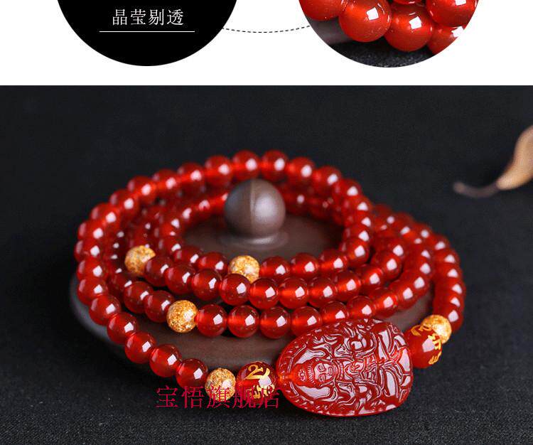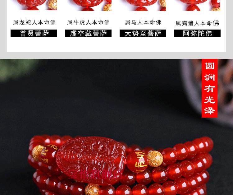 开光红玛瑙大日如来佛手链属羊属猴本命佛守护神108颗佛珠手链