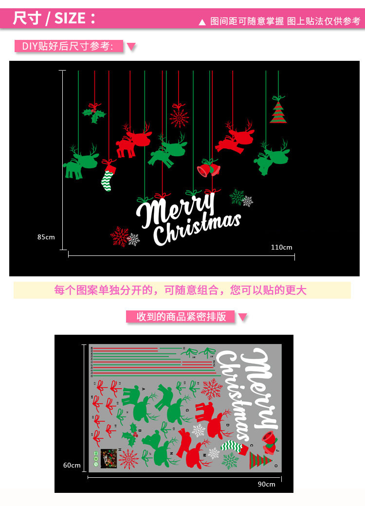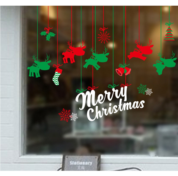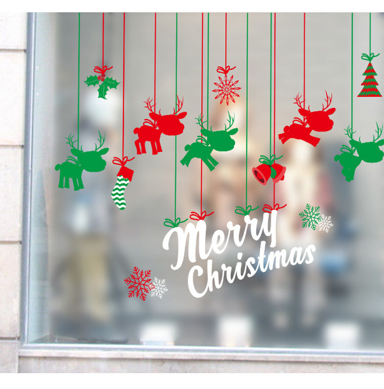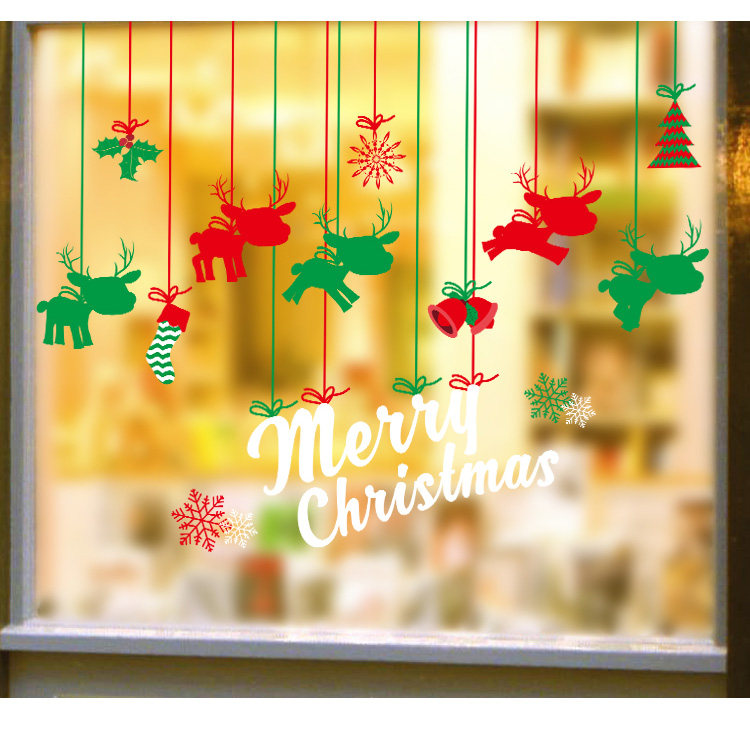 商场店铺橱窗户窗花玻璃门贴墙纸贴画墙贴纸圣诞吊坠麋鹿装饰贴纸