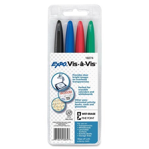 Expo Vis-A-Vis Wet Erase Markers, 4 Colored Markers (16074) - 12 Pk