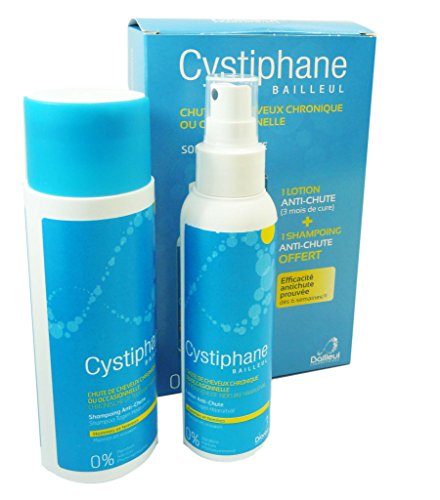 -. Feature : Cystiphane Box: 125 Ml Lotion and 200 Ml Shampoo / CYSTIPHANE Lotion is a unique formula that slows the fall, protects hair and scalp from external aggressions. / CYSTIPHANE Shampoo Anti-fall is a mild shampoo suited to fight against hair loss through its association 'essential asset to the health of the hair. Zinc pyrithione, slows hair loss and increases hair density. The precursor of cystine and vitamin B6. protect the hair bulb against external aggressions and stimulates hair growth. The sour natural hyaluranique, prevents drying of hair and reduces the irritation of the scalp. Its washing base high tolerance, cleans gently without drying the hair and facilitates styling. Your hair regains suppleness, volume and force.