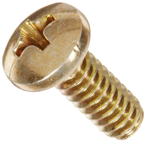 Steel Pan Head Machine Screw, Yellow Zinc Plated, Meets ASME B18.6.3, #2 Phillips Drive, #10-24 Thread Size, 1/2" Length, Fully Threaded, Import (Pack of 100)