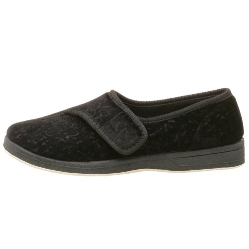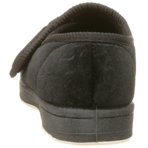 -. Feature : Hard-sole slipper featuring soft, plush upper with textured trim and hook-and-loop strap