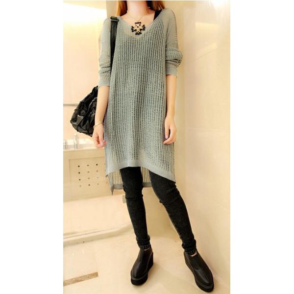 シースルーニットワンピース レディース チュニック 編み 長袖 2017 新作夏のリラックススタイルはシンプルなニットワンピースで決まり★ゆったりと着られるサイズ感に、ざっくり編みで透け感がオシャレ♪こだわりインナーを合わせてシンプルにまとめるのがおすすめ!【カラー】グレー【サイズ】フリーサイズ丈前75/丈後85/胸囲105/袖丈47(cm)※製品により多少の誤差が生じる場合がございます。【素材】ニット【ご使用上の注意】着用に問題のない製法のほつれ、商品の性格上、開封された商品・一度でも着用されました商品の返品・交換は一切お受け致しません。イメージと違う、サイズが合わない等の理由での返品は一切受け付けておりません。購入後のサイズ交換は対応しておりません。生産終了後すぐ発送しているため匂いがある場合がございます。ご了承ください。【生産国】made in china※商品はご注文を頂いてから2週間前後の到着となります。