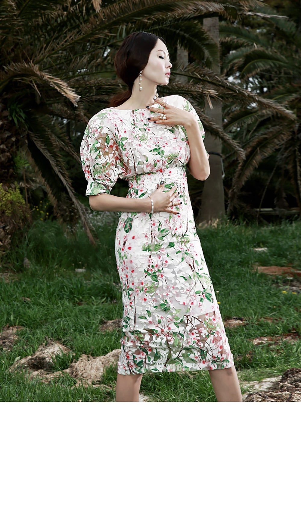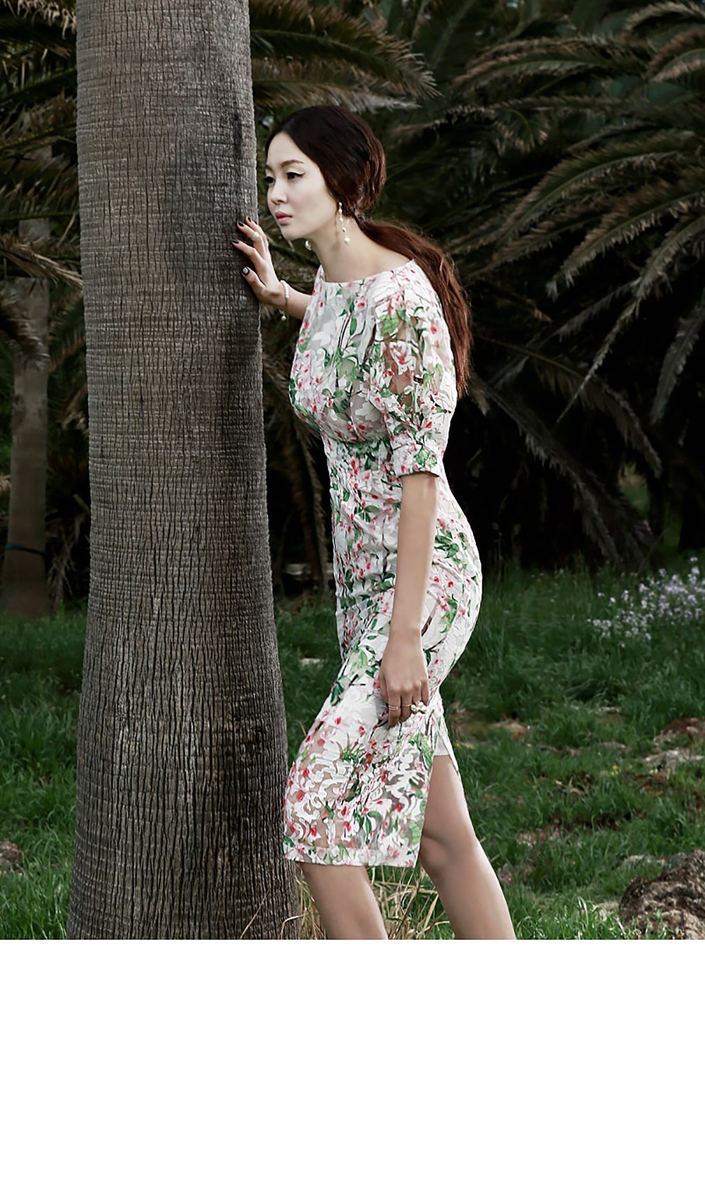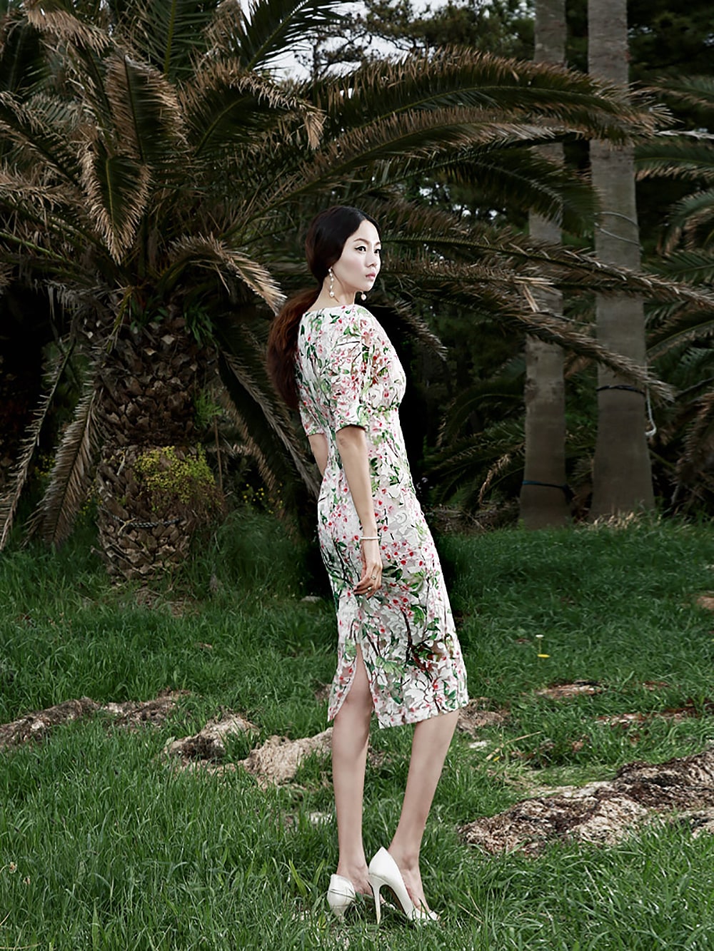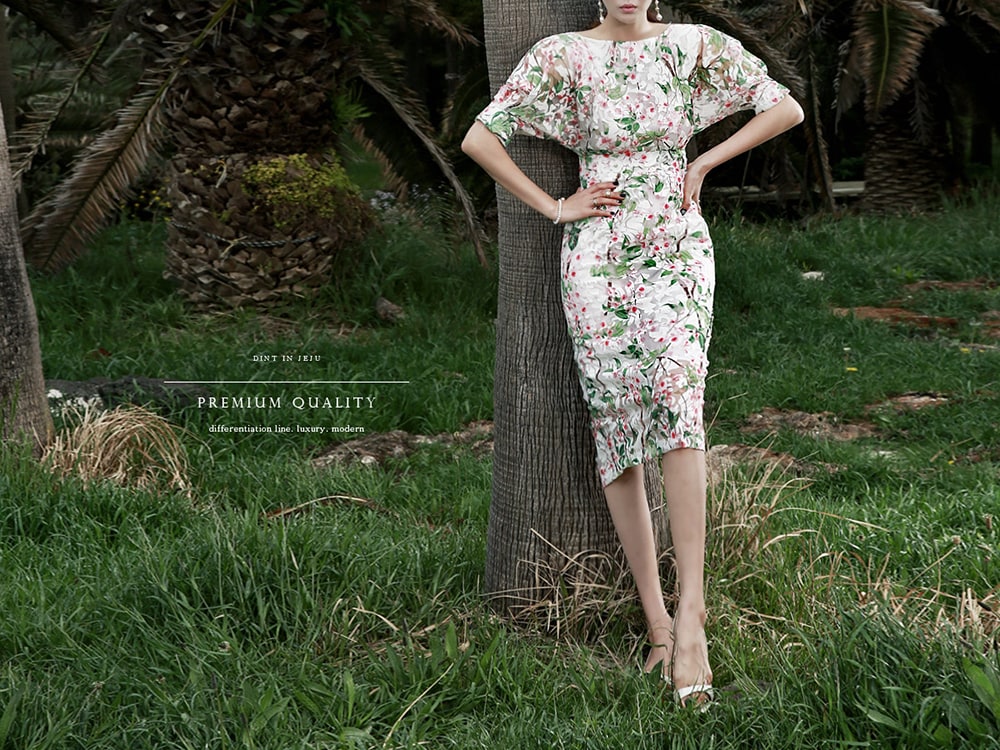 D3260 팬지 보트넥 슬림 원피스 Ivory mixAJ-3577 링 GoldAJ-3209 뱅글 GoldAJ-3591 이어링 Gold