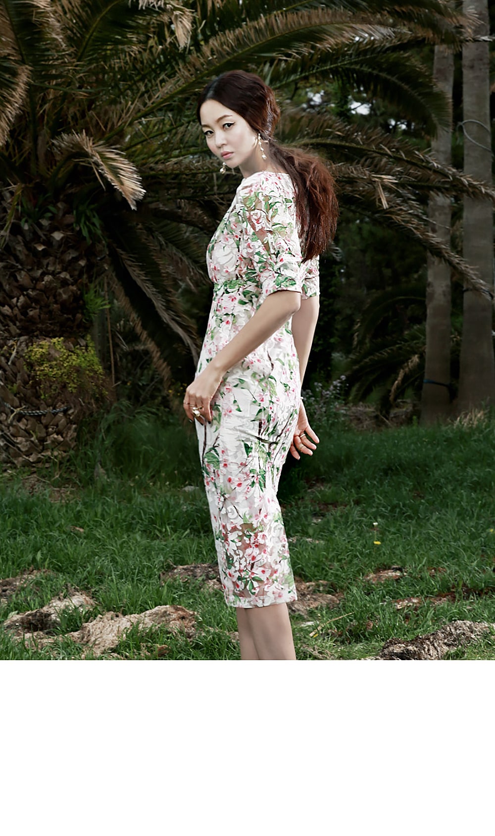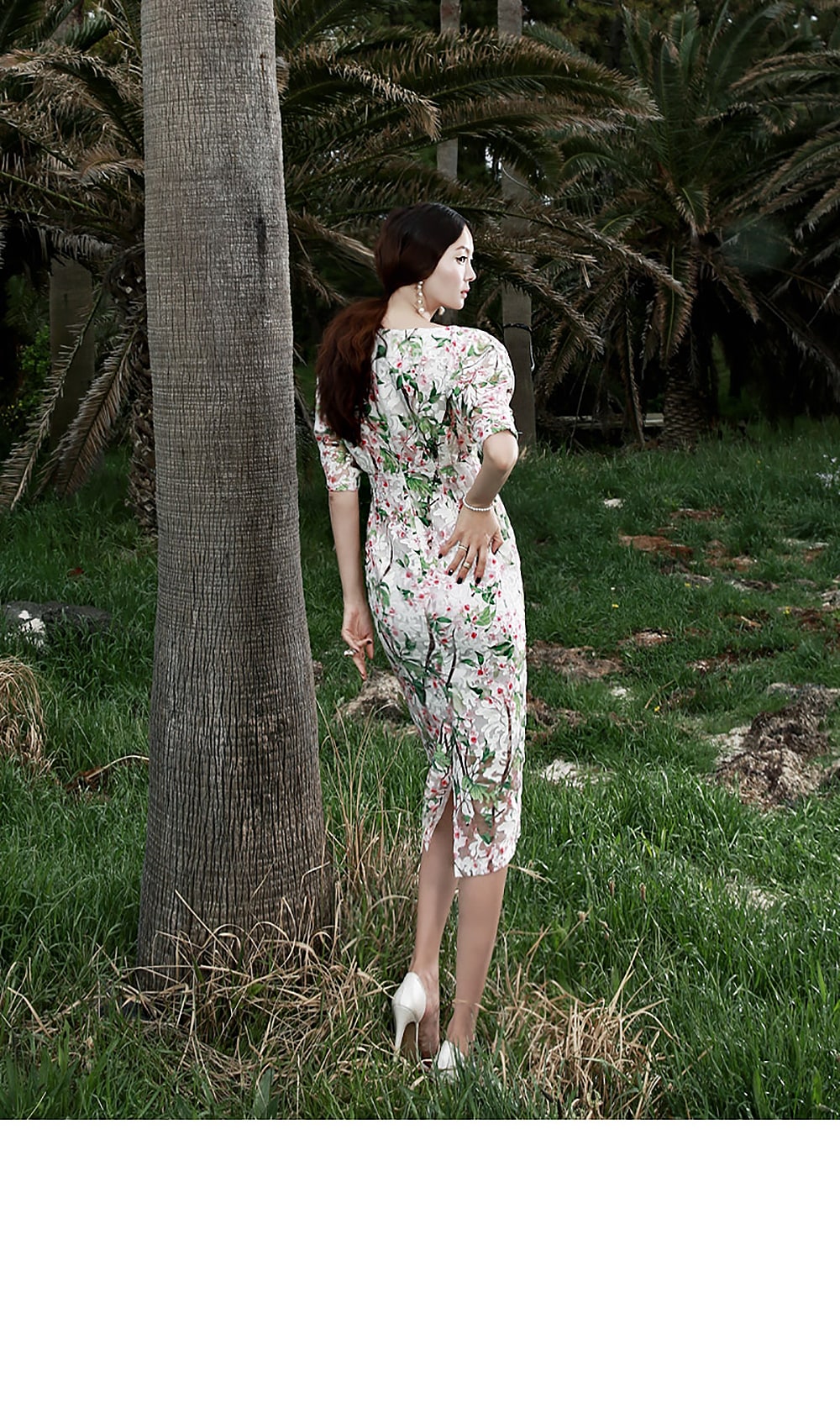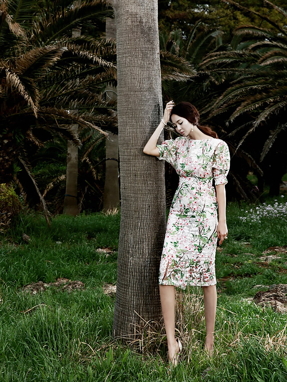 D3260 팬지 보트넥 슬림 원피스 Ivory mixAJ-3577 링 GoldAJ-3209 뱅글 GoldAJ-3591 이어링 Gold