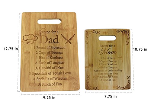 Recipe for a Dad and Mom Cutting Board Set - Cute Funny Laser Engraved Bamboo Cutting Board - Wedding, Housewarming, Anniversary, Birthday, Father's Day, Mother's DayGift
