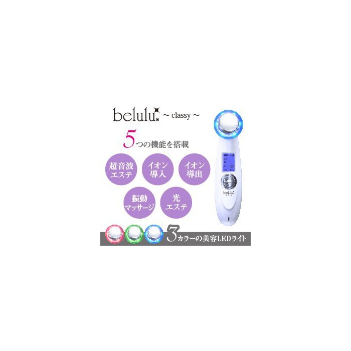 원본상품명: 日本製 美顔器 美ルル クラッシィ 海外使用可能belulu ~classy~ 多機能美顔器イオン導入イオン導出光エステマッサ?ジ 超音波 クレンジング コ?ドレス 充電式 小顔 (ディ?プブラ