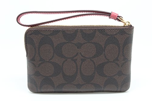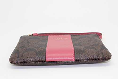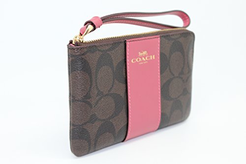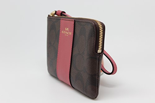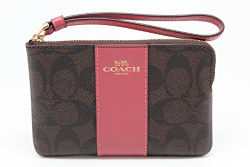 (Coach)/Accessories/Handbags/DIRECT FROM USA/COACH F58035 CORNER ZIP WRISTLET IN SIGNATURE COATED CANVAS WITH LEATHER STRIPE BROWN ROUGE