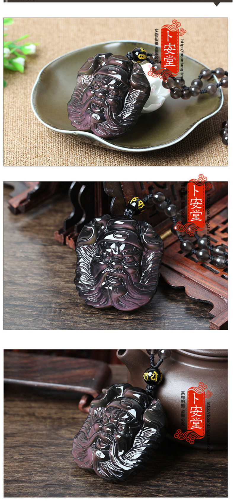 开光天然冰种彩虹眼黑曜石钟馗头吊坠黑曜石钟馗项链