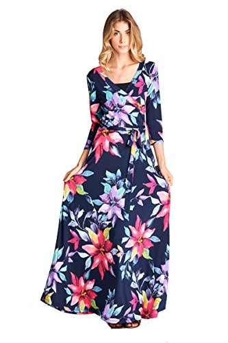 This lovely dress is very On Trend! A perfect transitional piece, that will take you well into spring, summer and fall! This is one of the hottest looks in maxis. This lovely dress has a surplice v neckline, tie belt with loops at waist, and solid fabric bottom (not open or slit). The fabric is heavy allowing the dress to hang beautifully. Comes in various colors and designs.