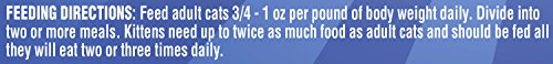 Directions:Feeding: Feed adult cats 3/4(en)1 oz. per pound of body weight daily. Divide into two or more meals. Kittens need up to twice as much food as adult cats and should be fed all they will eat two or three times daily.