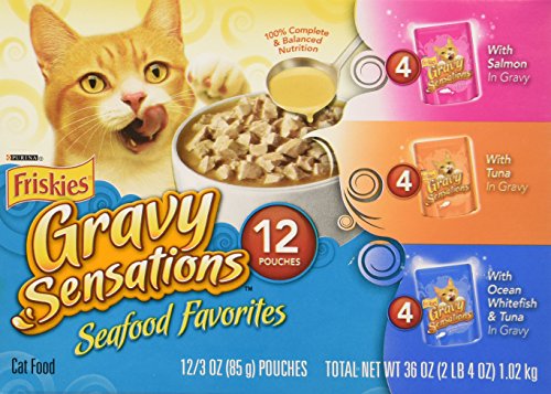 Prime Filets Seafood Favorites Variety Pack includes: 8-5.5 oz. cans Prime Filets with Ocean Whitefish & Tuna in Sauce, 8-5.5 oz. cans Prime Filets with Salmon & Beef in Sauce, and 8-5.5 oz. cans Prime Filets Chicken & Tuna Dinner in Gravy.