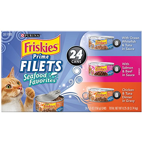 Twenty-four (24) 5.5 Ounce Can of Purina Friskies Prime Filets Seafood Favorites Cat Food Variety Pack