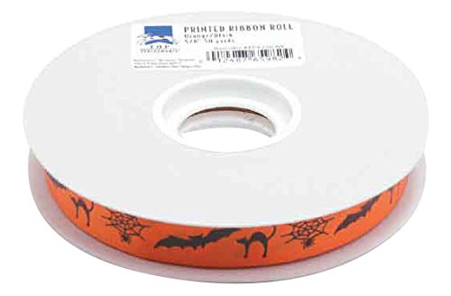 -. Feature : Water-repellent, non-fraying 5/8" satin acetate ribbon is perfect for making full-bodied decorative bows / Combine with solid-colored ribbon for extra-colorful double or triple bows / Black cats bats and spider webs adorn this deep orange ribbon / 50-yard roll