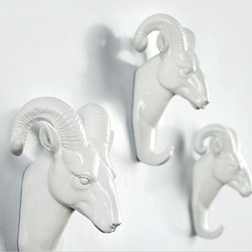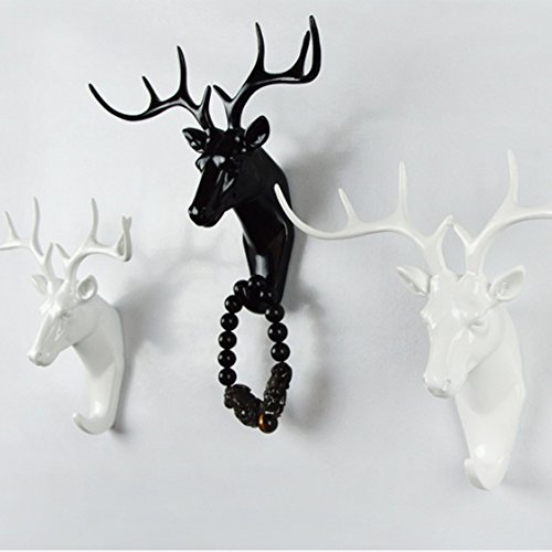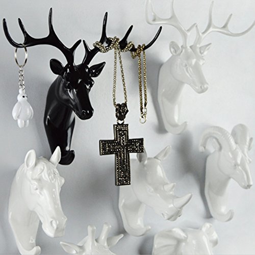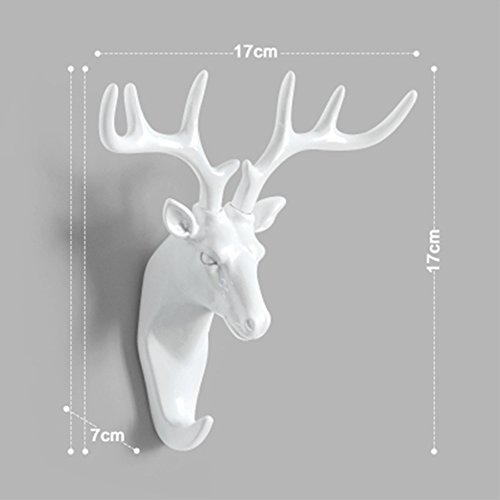 Creative Wall Decorations Animal Head Shaped Single Wall Hook / Hanger Resin Material for Hanging Clothes Coat Hats Keys Bags Purse Towels (White Deer)
