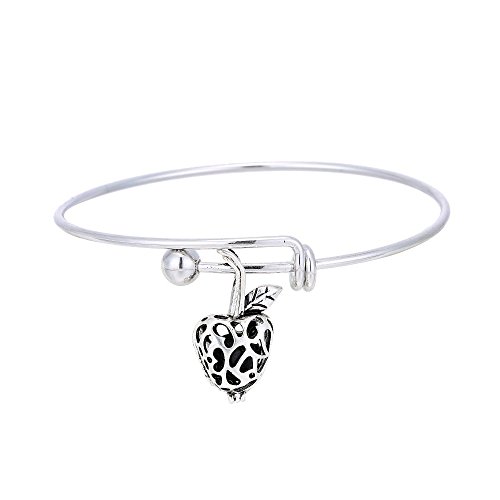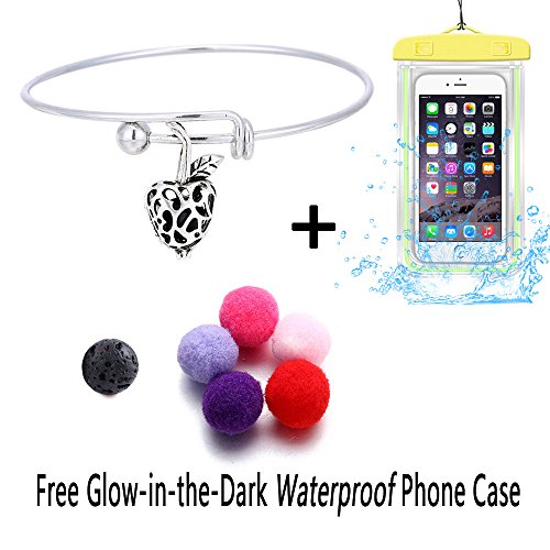 Essential Oil Diffuser Bracelet Aromatherapy Stainless Steel Expandable Bangle with Locket Pendant + 1 Lava Stone + 5 Refill Cotton Balls (Limerence)