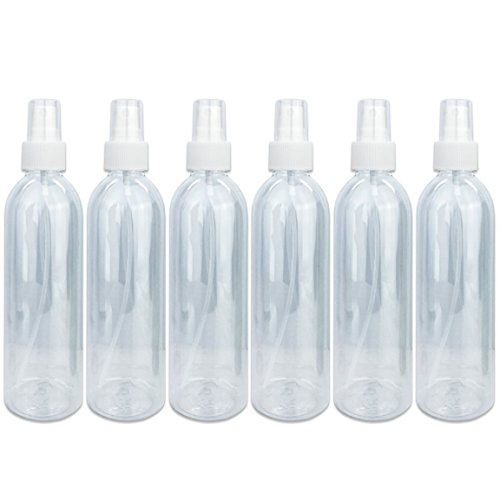Beauticom 6 Piece 8 Oz Clear Transparent Plastic Spray Bottle with Fine Mist Sprayer and Cap for Travel, Fragrances, Oils, Alcohol and Other Liquids