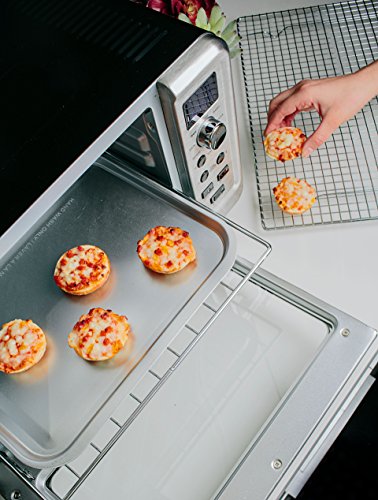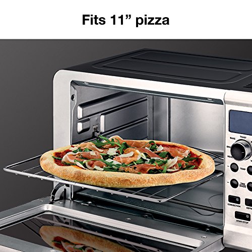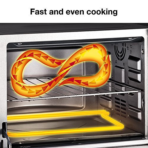 Measures 18.6 L x 15.07 W x 11.06 H | 1,800 watts | Fits a 12 pizza;6-slice capacity | Carry handle | Removable crumb tray | Baking pan;Adjustable height oven rack | Convection ovens cook faster and more evenly;Features toast, bake, defrost, reheat, warm and broil settings;With the Krups Metal 6-Slice Digital Convection Toaster Oven in Black/Silver, you can easily heat up a variety of food in a multitude of ways