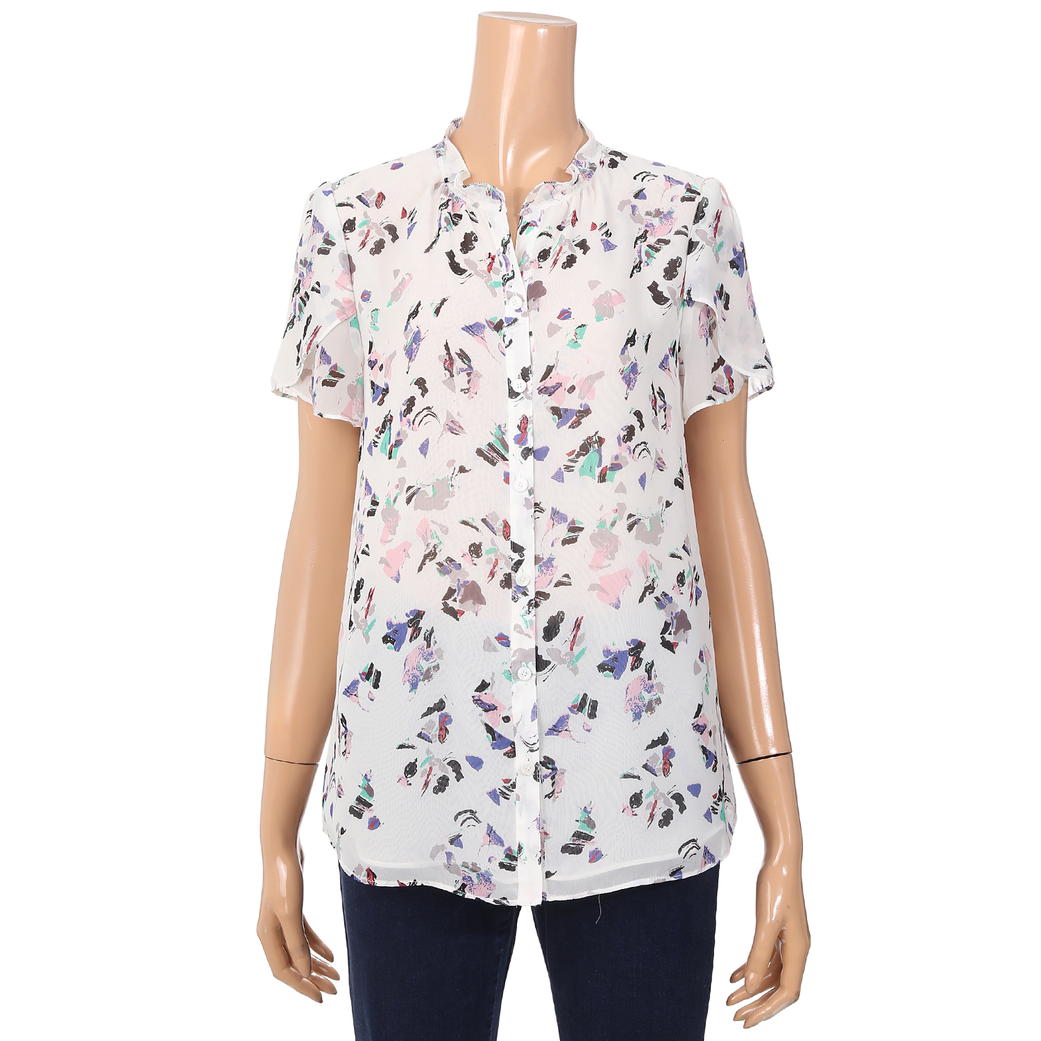 반팔 프린트 쉬폰 블라우스입닏다 시원하면서도 가볍게 입을 수 있는 디자인입니다