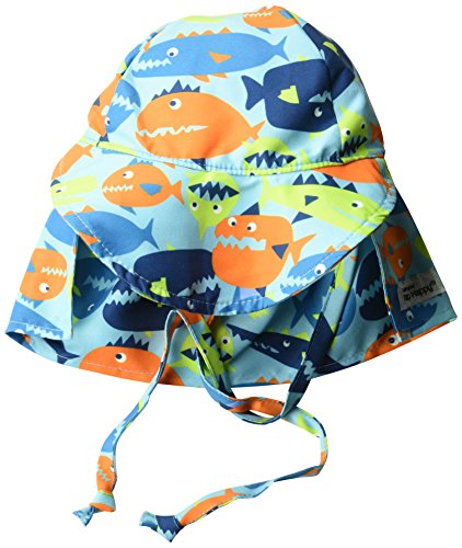 Flap Happy Baby Boys' Upf 50+ the Original Flap Hat with Ties, Fish Frenzy, M