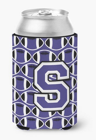 Caroline's Treasures CJ1068-SCC Letter S Football Purple and White Can or Bottle Hugger, Multicolor