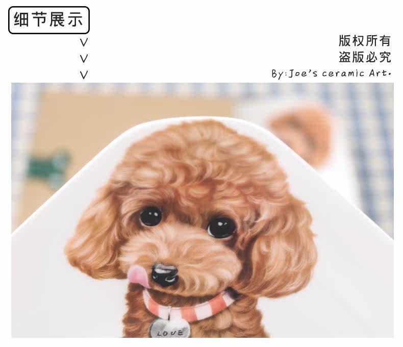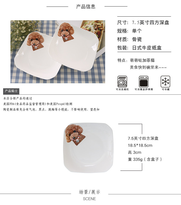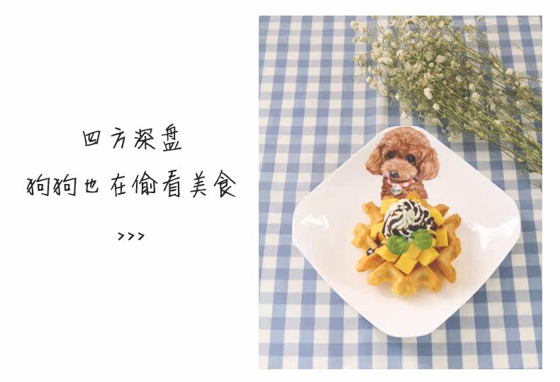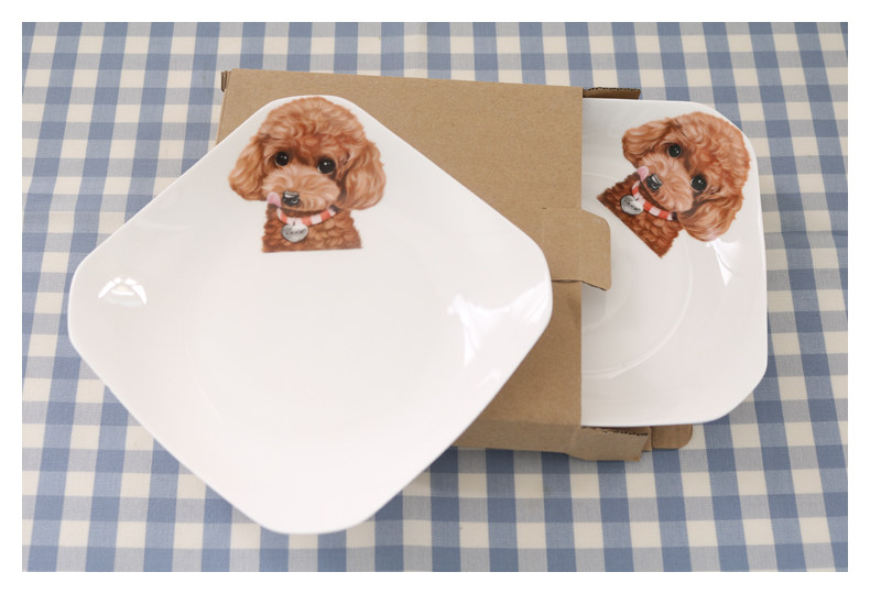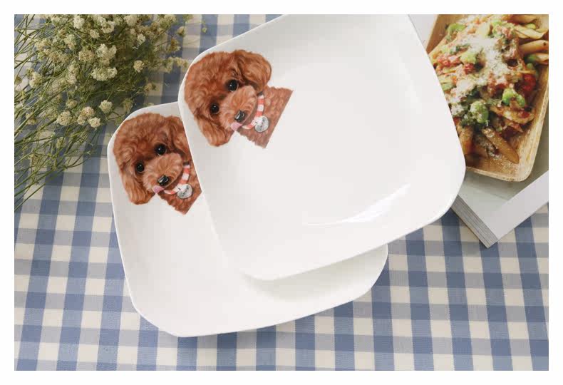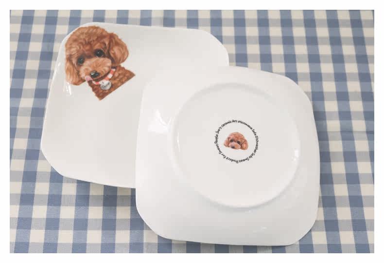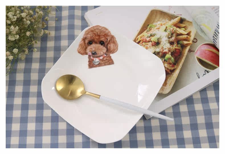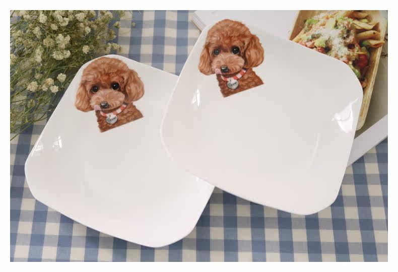 创意动物盘子西餐盘子韩式点心盘四方盘菜盘家用陶瓷餐具泰迪盘子