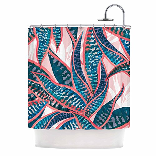 KESS InHouse Mmartabc Succulent Pattern Leaves Blue Pink Illustration Shower Curtain, 69" x 70"