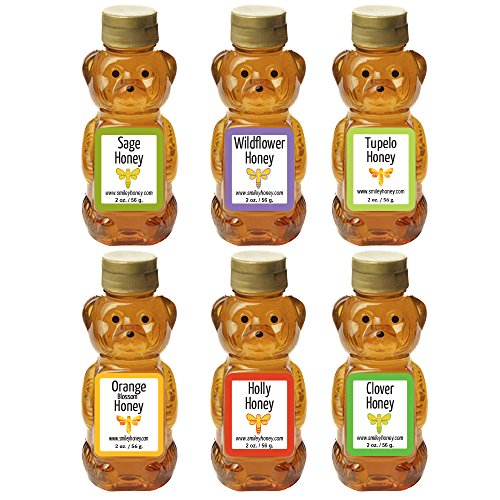 Smiley Honey - Baby Bears Variety Pack (Holly Honey, Orange Honey, Tupelo Honey, Clover Honey, Wildflower Honey, Sage Honey)