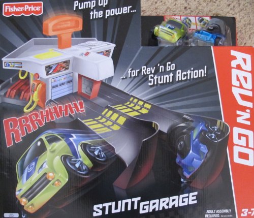 -. Feature : Rev 'N Go Stunt Garage with 2 Cars is a 2012 Fisher Price Mattel production. / INCLUDES: Garage with Fuel Pump, Power Gauge, Track & More, & 2 Cars: Green Dune Racer Car approx. 3" long x 2-1/2" wide, & Blue Prototype Racer Car approx. 3-1/2" long x 2-1/2" wide. / YOU can Tighten Wheels or Fuel UP for Fun Sounds! Requires 1 "AA" Battery (NOT included). Place Racer Car on Platform, Pump Up the Power & Push the Button! ZOOM!! The Car Races Down the Ramp for Awesome Stunt Action! / For Ages 3+ Years. Adult Assembly Required. BOX approx. 18-1/4" x 16" x 5-3/4". All sizes, colors & details are provided to the best of my ability & may not be exact & may vary. / *Box has minor shelf wear & some creases on back. For Box Condition see CONDITION NOTE or Email Seller for Details.
