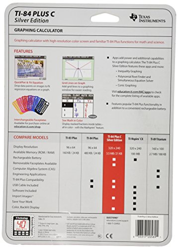 Texas Instruments TI-84 Plus C Silver Edition Graphing Calculator, Black
