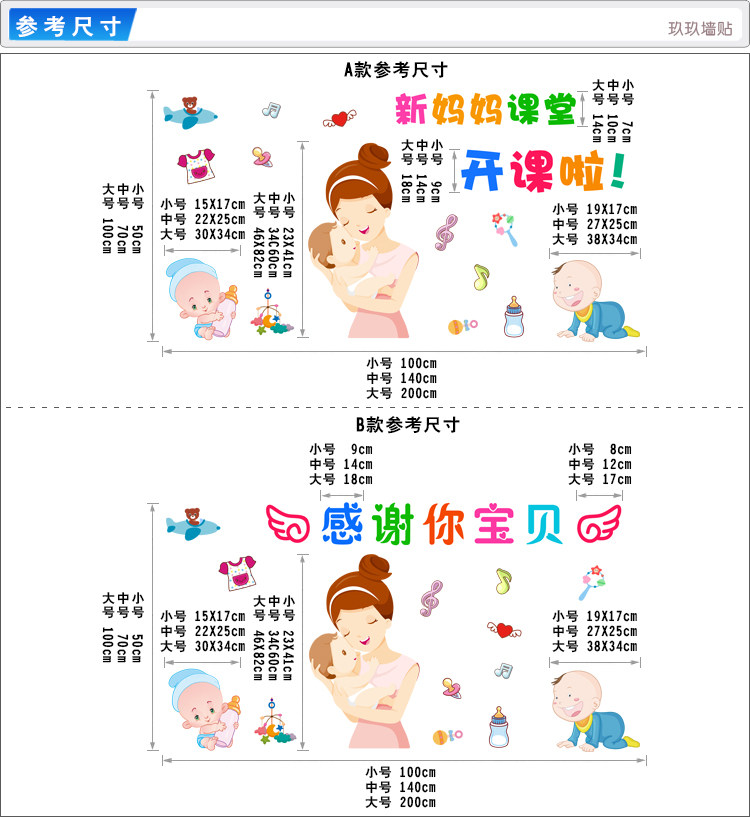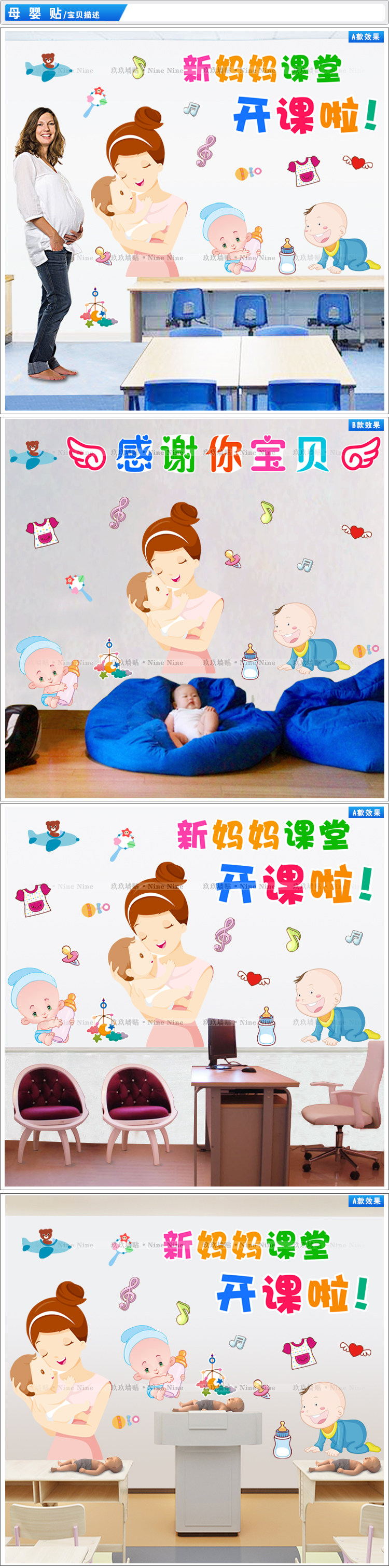 医院新生儿婴儿宝宝孕妇学校背景墙贴新妈妈宝宝育儿课堂贴纸贴画