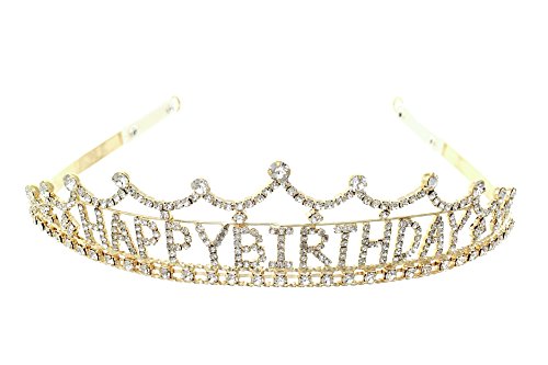Arsimus Rhinestone Happy Birthday Princess Tiara (Gold)