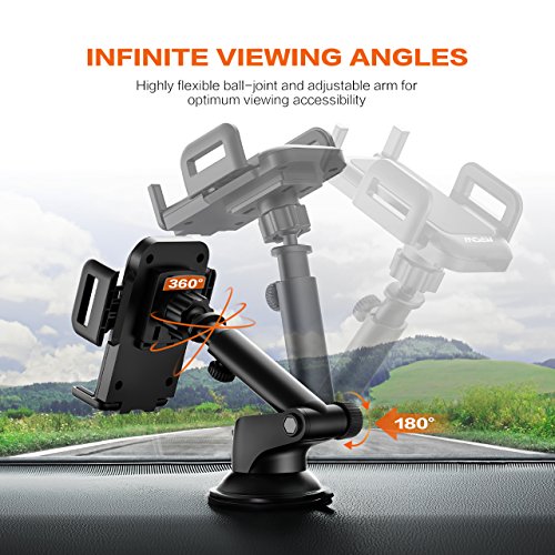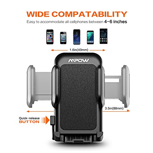 Flexible Arm Lock: Simply press the button to adjust arm width that ranges from 1.6-3.5in (4-8.8cm). Our car mount holder is compatible with most smart phones up to 6 inches.
