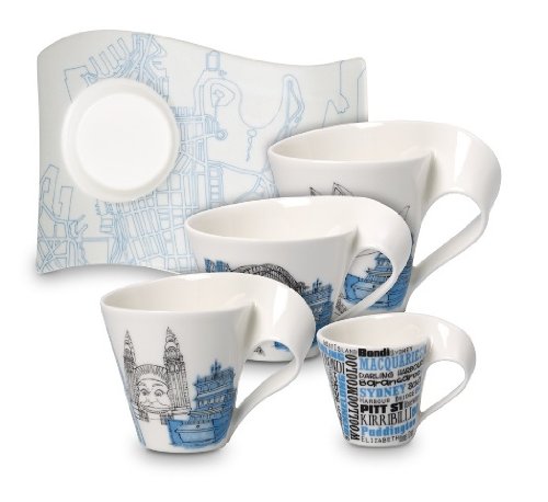 -. Feature : Auf eine Tasse Kaffe in Europas Metropolen. / Detailreiche Illustrationen im Vintage-stil mit Wahrzeichen von Sydney. / Die New Wave- Kollektion " Cities of Europe" macht dies zur Sammleredition nicht nur für Reiselustige. / Jede Stadt hat Ihre Farbe-Sydney -helles blau.