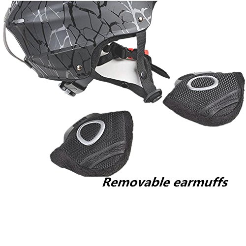 -. Feature : 2016 new Material: ABS plastic shell + EPS inner shell, velvet foam / Size: L: 22.84''-24.02'' (58 --- 61cm), M: 21.26''-22.84'' (54--58 cm). Weight: L: 1.39lb M: 1.32lb / Removable earmuffs and lining: warm and comfortable earmuffs and lining are detachable design, the convenience of customers daily cleaning. And removal easy, soft, comfortable cotton velvet, washing does not shrink, does not fade. / There are size adjustment button, you can easily adjust the size to suit your head circumference on the product. / Suit for snowboard,skiing,rock-climbing,skate,kick scooter,skateboard or other extreme sports