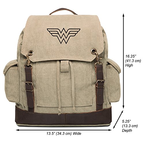 -. Title : Wonder Woman Symbol Vintage Canvas Rucksack Backpack with Leather Straps