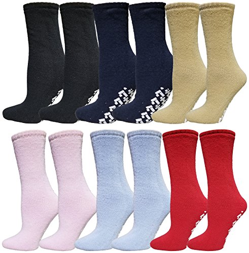 -. Feature : SECURE ANTI-SLIP SOCKS: Features a non slip bottom that provides traction and prevents slipping and sliding. Perfect for wearing as slipper socks especially for hardwood or tiled floors which could be very slippery. These crew socks with skid resistant bot are perfect for everyday wear, and with 12 pairs, you won't run out of slipper socks again! / GRIPPER BOTTOM FOR HOME AND TRAVEL: Can be worn indoors for a wide range of activities including yoga and pilates. Perfect for travel as you could tuck these away and wear them around your hotel room for protection and comfort. Can also be worn in a studio, hospital, gym, and more. / SLIPPER SOCKS WITH SKID RESISTANT RUBBER TREADS: Protects your feet from cold floors by providing a layer of protection for your feet. Easily scale steps or lounge on the couch with these comfortable crew length slipper socks. Perfect for the elderly. / COMFORTABLE & FASHIONABLE: Can be worn with shoes for comfort and style. These crew length socks are great for multipurpose use and makes a great addition to your ensemble. Whether it's for sports, an exercise routine, or for casual wear, these socks are perfect for all of it. / 12 PAIR BULK PACK: Sock size 9-11 will fit women shoe sizes 5-10. Perfect as a gift for a loved one, family member, friend, or co-worker. Each bulk pack includes 12 pairs of socks in assorted colors. Get a dozen in a pack in one cheap wholesale P.R.Ice.