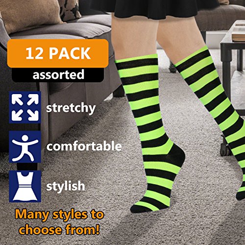 -. Feature : WOMENS KNEE HIGH SOCKS: These cute knee high socks for women come in assorted colors. Give yourself different colors to go with each outfit and style. / WOMENS BOOT SOCKS: Perfect to wear with knee high boots, mid boots, shorts, skirts, and more. / KNEE HIGH SOCKS: Perfect for all season wear and various occasions. Whether you're wearing it casually, to work, to a party, or to dinner. / KNEE SOCKS: One size fits most. Size 9-11 will fit women's shoe sizes 5-11. 20% stretch spandex allows more comforting fit. / COTTON SOCKS: Made with 80% cotton and 20% spandex for stretch and comfort.