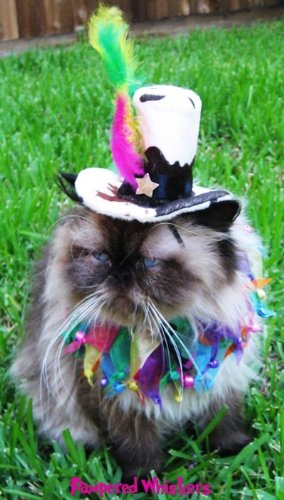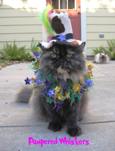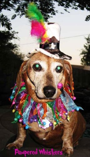 -. Binding : Misc. -. Brand : Pampered Whiskers -. Color : multi -. EAN : 0797734058949 -. Feature : dense velour spotted party hat with 3 bright feathers / packaged in That Cat! Originals signature box / *party collar sold separately / $1 from each purchase goes to benefit animals who are not as fortunate as our own -. Label : Pampered Whiskers -. Manufacturer : Pampered Whiskers -. MPN : Pam-6801 -. PackageQuantity : 1 -. PartNumber : Pam-6801 -. ProductGroup : Pet Products -. ProductTypeName : PET_SUPPLIES -. Publisher : Pampered Whiskers -. Size : 4.5" diameter hat -. Studio : Pampered Whiskers -. Title : Mad Hatter Party Top Hat for Cats and Dogs -. UPC : 797734058949