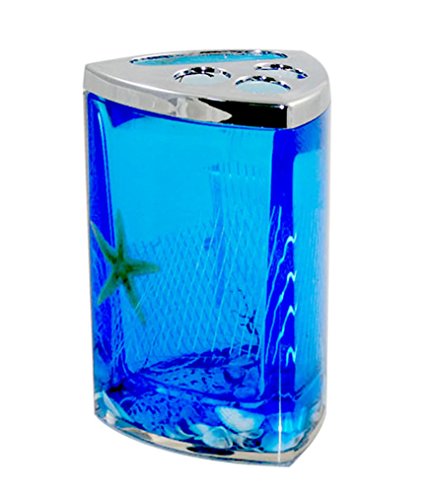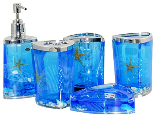 Beach Seashell + Starfish Bathroom Accessories Set Tumbler/Soap Dish/Liquid Soap Dispenser/Toothbrush Holder- Blue Oil