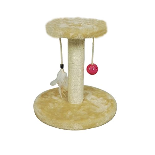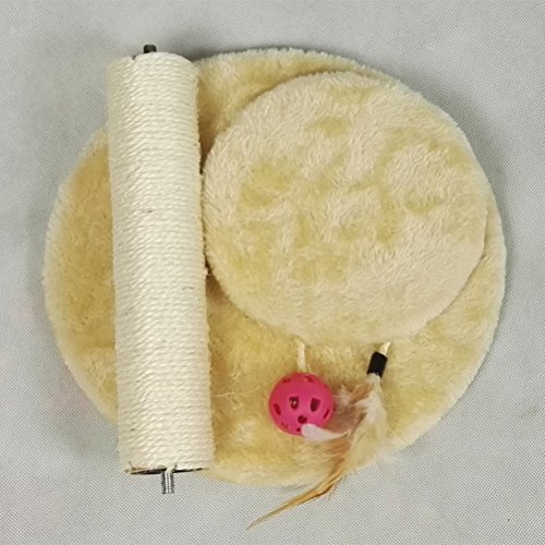 - Color: Beige - Material: sisal fibre - Size: 28x28x29cm/11x11.4inch - It is able to stop your cat from destroying your furniture. - Easy to assemble with instruction and tools included. - Thre are two hanging eye-catching decorations. - It is also a suitbale place for cat to sleep. - Made of high quality material, it is able to clip claws gradually.