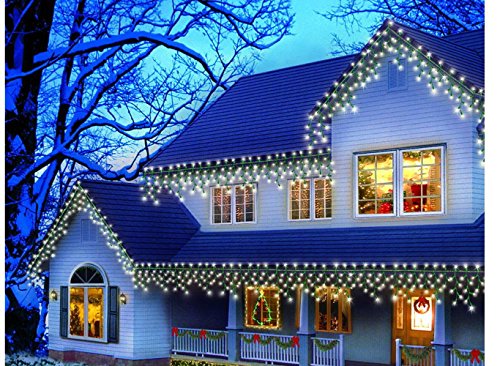 Cosmo Lighting Christmas / Outdoor / Patio Lights 70 count ICICLE Concave LED String Lights, White Wire, Cold White