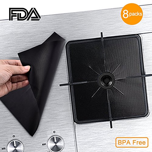 8 Packs 0.2 mm Gas Range Protectors,Reusable Non-Stick Stovetop Burner Protector Liner Cover - 100% Certified BPA & PFOA Free - Fast Clean Liners for Cooking