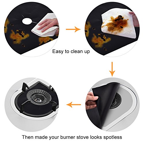 100% NON-STICK AND REUSABLE - The gas range protector are Reusable also 100% Non-stick & Dishwasher Safe. You also can wipe it clean or wash with soapy water and rinse easily, then you can use it again.