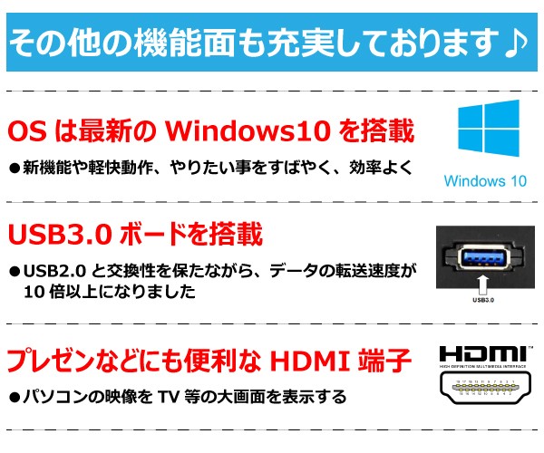| 入出力ポート | USB3.0 x4 USB2.0 x1 HDMI付き |